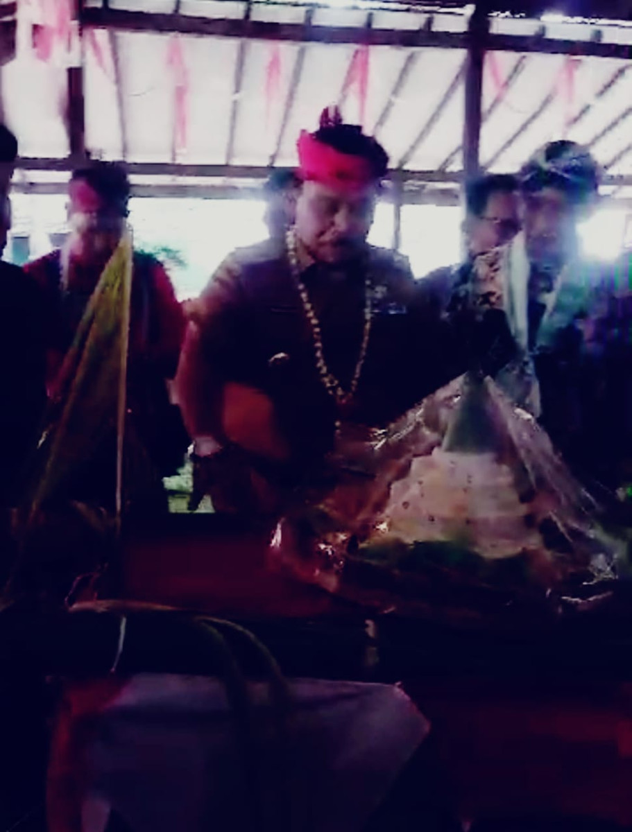 Usai sambutanya, musik Kebo giro bergema dan 4 Tumpeng dipikul berjumlah enam orang dari arah Timur tepatnya di regol depan, melangkah menuju pendopo, disambut sorak sorai dan tepuk tangan pengunjung, berhenti di depan Bupati, Tumpeng tersebut merupakan lambang dari 4 penjuru sebagai tolak balak dari keburukan ( sengkolo ), selanjutnya Tumpeng dipotong oleh MARHEIN DJUMADI dan diberikan pada ketua DPC PJI Nganjuk, setelah itu melangkah menuju mobilnya dan meninggalkan acara.