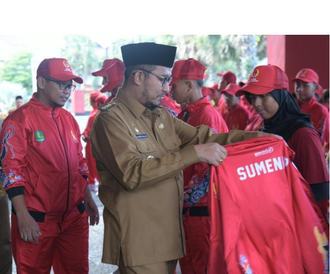 Bupati melepas kontingen Kabupaten Sumenep yang berlaga pada Porprov Jawa Timur 2025 ke-IX, ditandai dengan pemasangan jaket kepada perwakilan atlet sebagai simbol dukungan dan pemberangkatannya.