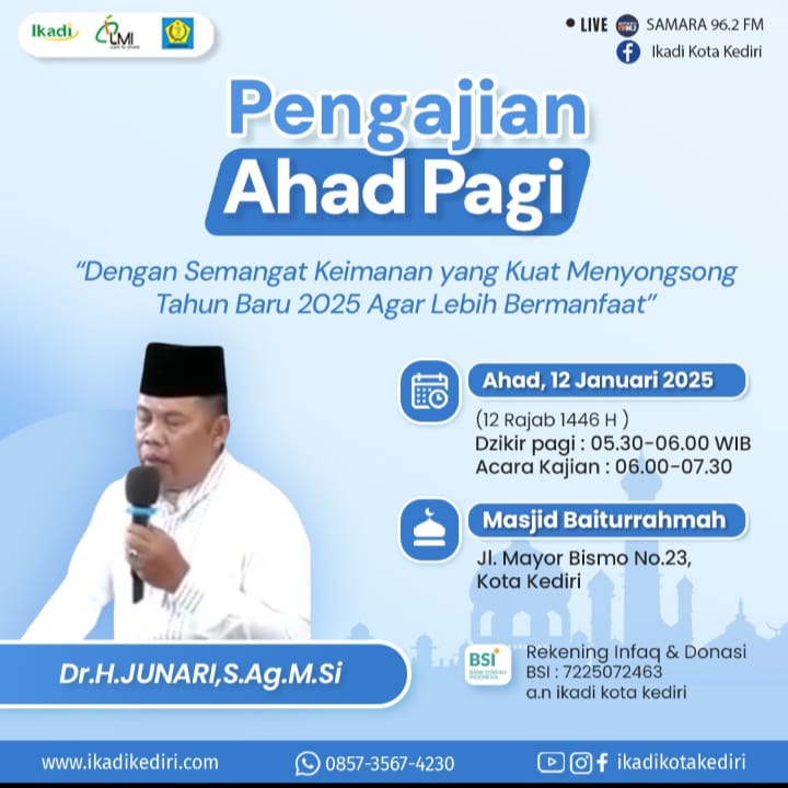 IKADI kota kediri bisanya banyak mengundang beberapa Penceramah dari Ibu Kota Jakarta spt Mama Dedeh, Ustad Yusuf Mansur, Cak Nun dan Beberapa Nama yang familiar di Jamaah pungkasnya..