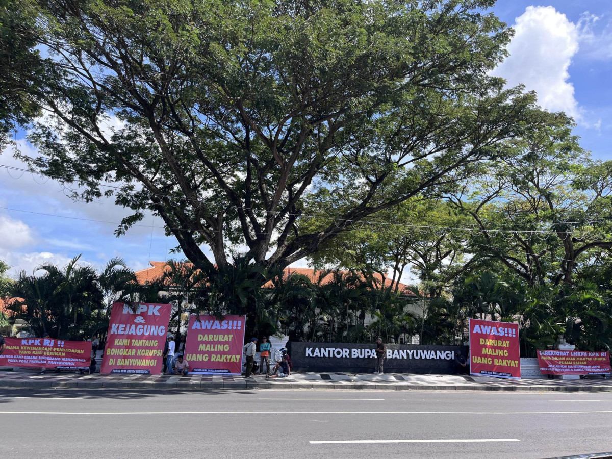 Banyuwangi_ Jakartapatrolienews Setelah diawal pemerintahannya beberapa kali didera isu ijon proyek APBD, pemerintahan Ipuk – Mujiono rupanya akan tetap menjadi sorotan tajam berkaitan dengan isu – isu korupsi di Banyuwangi,Kamis (17/7/2025) sekelompok masa yang mengatasnamakan Forum Anak Bangsa Menggugat mendatangi halaman kantor Bupati Banyuwangi dengan membawa sepanduk atau bener dengan berbagai ukuran yang berisikan kritikan tajam.