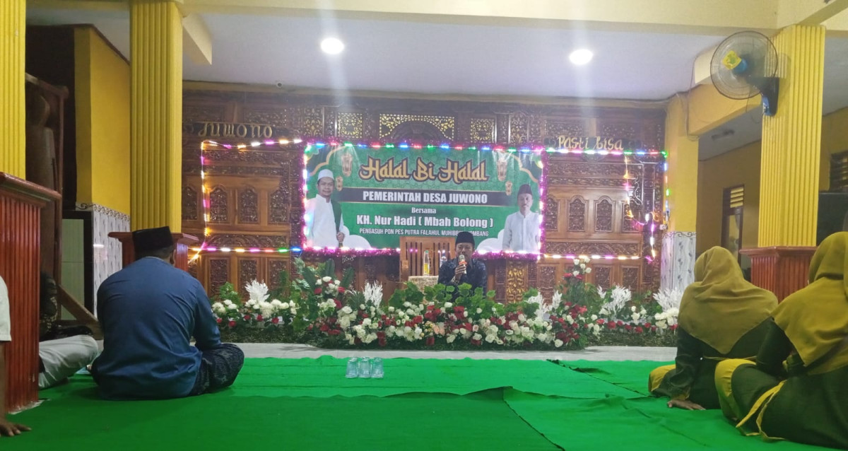 kepala desa Juwono kecamatan Kertosono beserta staf dan jajarannya melaksanakan acara halal bihalal di pendopo kantor desa, yang dihadiri oleh semua perangkat desa, tamu undangan selain masyarakat dan tokoh masyarakat juga nampak hadir perwakilan dari Forkopimcam, perwakilan dari Polsek setempat, dan perwakilan dari Koramil serta juga hadir perwakilan dari berbagai media dam LSM dari Nganjuk dan yang lebih istimewa dalam acara halal bihalal kali ini juga hadir pengasuh ponpes putra Falahul Muhibbin Jombang yang tak lain KH Nur Hadi atau yang lebih akrab dipanggil Mbah Bolong.
