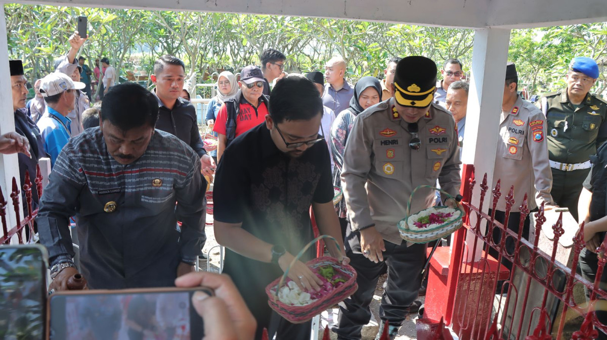 Nganjuk_ Kapolres Nganjuk bersama Forkopimda dan unsur serikat buruh serta berbagai mahasiswa yang berada di nganjuk menggelar ziarah dan di makam Marsinah, Kamis (1/5/2025). Giat untuk memperingati Hari Buruh Internasional ini diawali doa bersama pukul 08.00 WIB di Tempat Pemakaman Umum Desa Nglundo, Kecamatan Sukomoro,” imbuhnya.