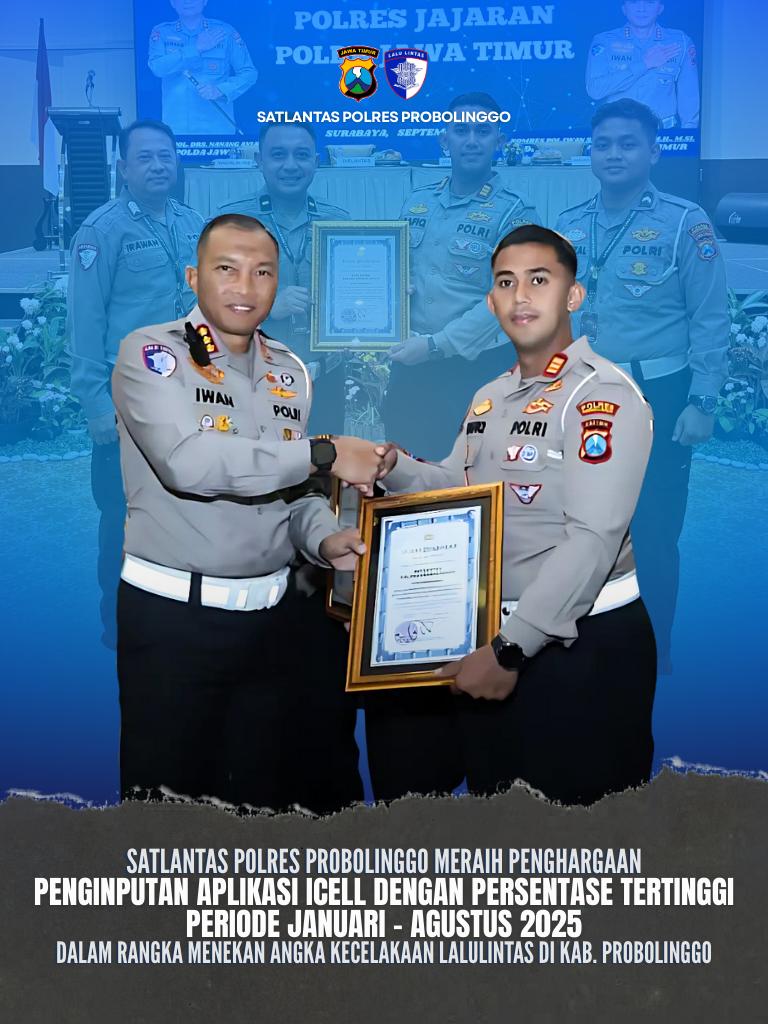 Kasat Lantas Kabupaten Probolinggo, AKP Safiq Judhira Z.,S.Tr.K.,S.I.K.,M.Si.mencatat prestasi gemilang dengan meraih penghargaan dari Dirlantas Polda Jatim. Penghargaan ini merupakan pengakuan atas capaian luar biasa dalam menurunkan angka kecelakaan lalu lintas di Probolinggo hampir separuh sepanjang tahun 2025. Sebuah pencapaian yang tidak hanya membanggakan, tetapi juga menjadi kabar baik bagi keselamatan warga dan pengguna jalan di wilayah tersebut.(jumaat 12/September 2025