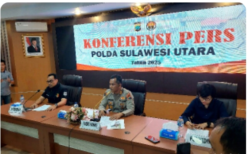 Penjelasan ini disampaikan dalam konferensi pers yang dipimpin oleh Kabid Humas Polda Sulut AKBP Alamsyah P. Hasibuan didampingi Kabag Wassidik Ditreskrimum Polda Sulut AKBP I Dewa Nyoman Suryanegara, Kasubdit 2 Harda Kompol May Diana Sitepu dan Penyidik, di ruang Tribrata Polda Sulut, Sabtu (17/5/2025) malam.