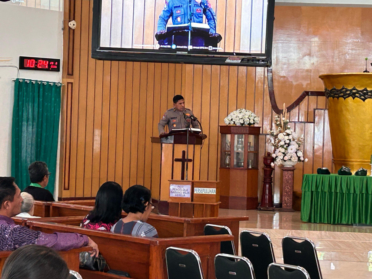 Kali ini, Polda Maluku yang di pimpin Kompol Hendrik R, P.S Kasubdit Binpolmas mengunjungi Gereja Silo untuk menyampaikan pesan kamtibmas kepada para jemaat pada Minggu (23/2/2025).