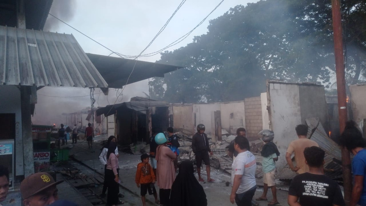 “Milka Rante (51) yang juga merupakan pedagang di lokasi kejadian menerangkan bahwa saat itu dirinya bangun sekitar jam 02.30 Wit untuk mempersiapkan jualan kue kering, dan saat itu Ia mendengar bunyi Klutuk-Klutuk, kemudian Ia membuka pintu dan melihat bahwa api sudah menyala dari salah satu ruko jalan masuk blok B dan Blok C, setelah itu dirinya keluar dan berteriak api-api, dan bergegas untuk menyelamatkan diri” tambah Kapolres.
