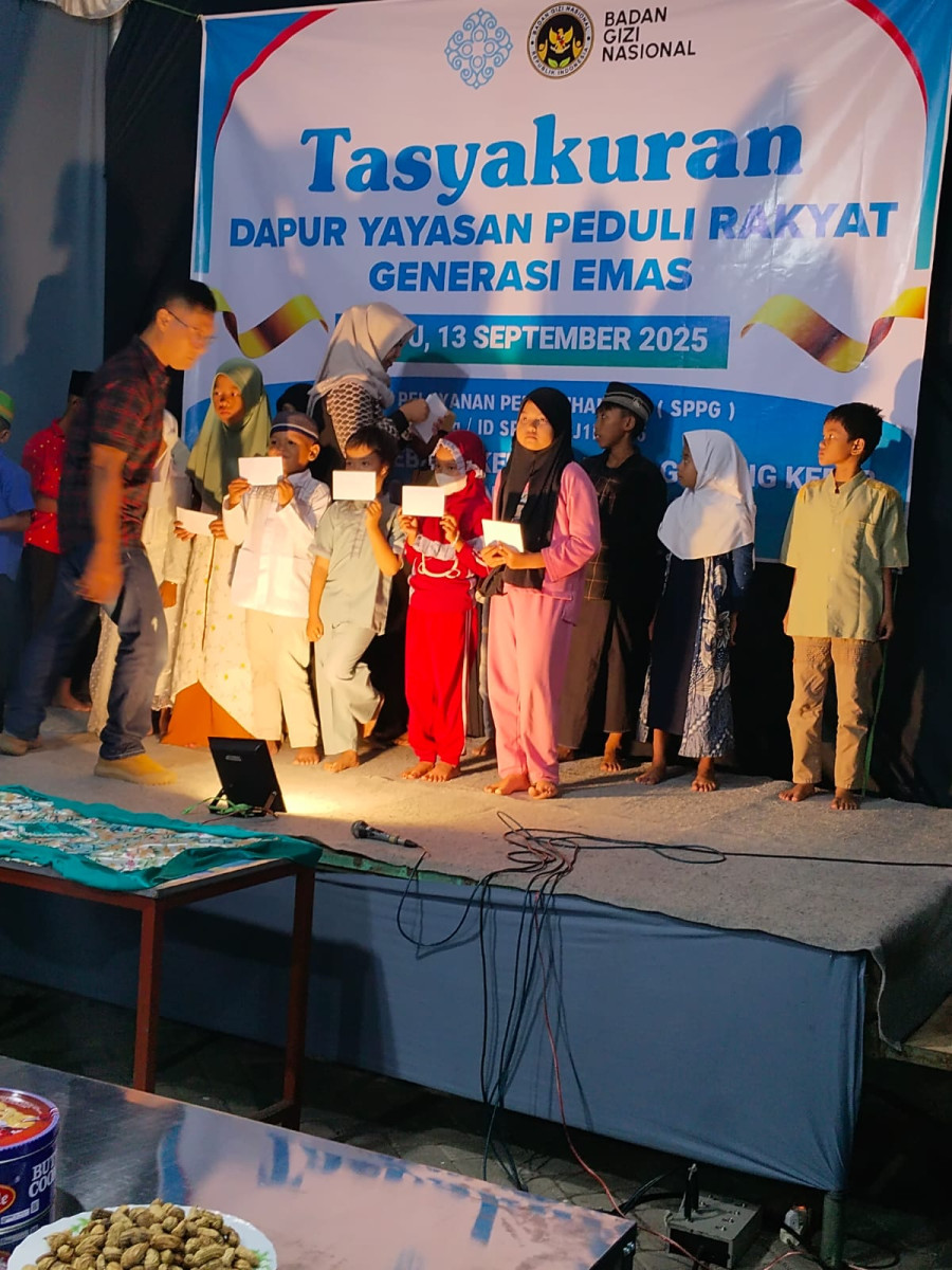 Bapak Hery Subagio, pembina SPPG, menjelaskan bahwa program Dapur Makan Bergizi Gratis ini merupakan inisiatif pemerintah yang sangat penting dan harus mendapat dukungan penuh karena menjadi harapan masyarakat untuk mendapatkan akses makanan bergizi secara cuma-cuma. Ia juga menghibur hadirin dengan melantunkan pantun, menambah suasana menjadi lebih hangat dan akrab.